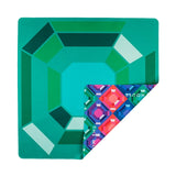 A travel-sized mahjong mat for use with our travel sets. Bring twice the brilliance to your game-on-the-go with our Emerald Gem Double-Sided Mahjong Mat. One side features one large faceted sapphire and the other side a pattern of all of our Jewel Collection jewels. This mat creates a stunning backdrop, especially to our White with Jewel-Tones Travel Mahjong Set, adding luster to every jewel of a game.