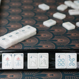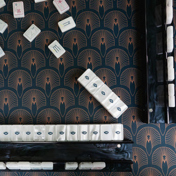 Elevate your Mahjong game with our black mother of pearl acrylic magnetic Mahjong Racks—an elegant, modern twist on a must-have playing tool. Crafted from lightweight acrylic, these racks are durable, easy to handle, and fit walls of up to 20 tiles, making them perfect for any game. They blend seamlessly with any decor, adding a touch of sophistication to your game table. The magnetic pusher adds to the versatility too. These are a beautiful mother of pearl pattern designed to match The Deco Collection Tiles, but work beautifully with countless combinations of tiles and mats in our collection.