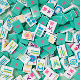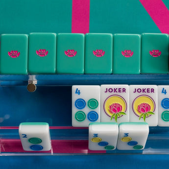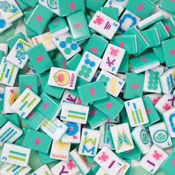 Our teal tiles bring a cool pizzazz to this eclectic, electric reimagining of The Mahjong House’s traditional House Collection—a celebration of life’s most beautiful moments, now in vivid technicolor. Adorned with our signature enchanting peacocks, vibrant butterflies, and colorful florals in fun, dazzling colors, The House Collection: Brights transports your game to a joyful garden of candy-colored delights. Pair your Teal House Tiles with any of our Brights Collection mats, designed to mix-and-match brilliantly with all tiles in the collection.